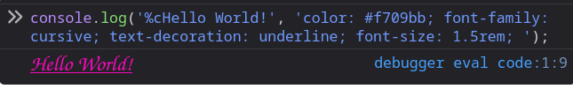 It’s possible to style our log outputs with some basic CSS, such as colors, fonts, text styles and sizes.